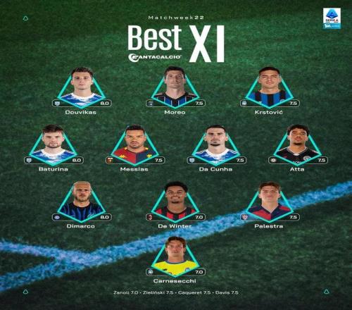 意甲第22轮最佳阵容